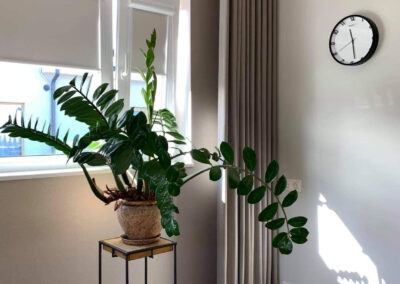 - Рулонные шторы без проблем вписываются в минималистский интерьер, потому что в свернутом виде остаются практически незамеченными.